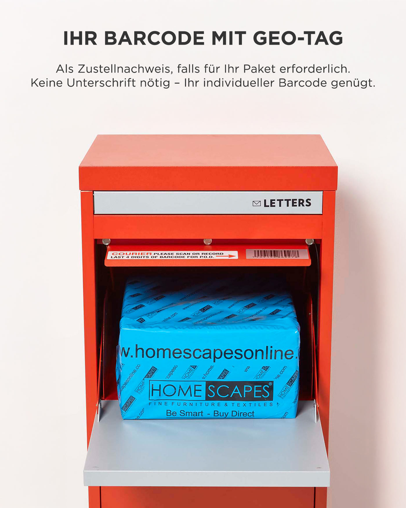 Ja. Der Barcode an der Innenseite der Lieferklappe dient als Alternative zur Unterschrift des Empfängers. Bei Anweisung, das Paket in die Smart Parcel Box zu liefern, wird der Zusteller berechtigt, diesen Scan als Zustellbestätigung zu nutzen. Es gibt nur einige besondere Fälle, wenn tatsächlich eine persönliche Übergabe und eine Unterschrift nötig sind, z.B. beim Zustellen von Personalausweisen.