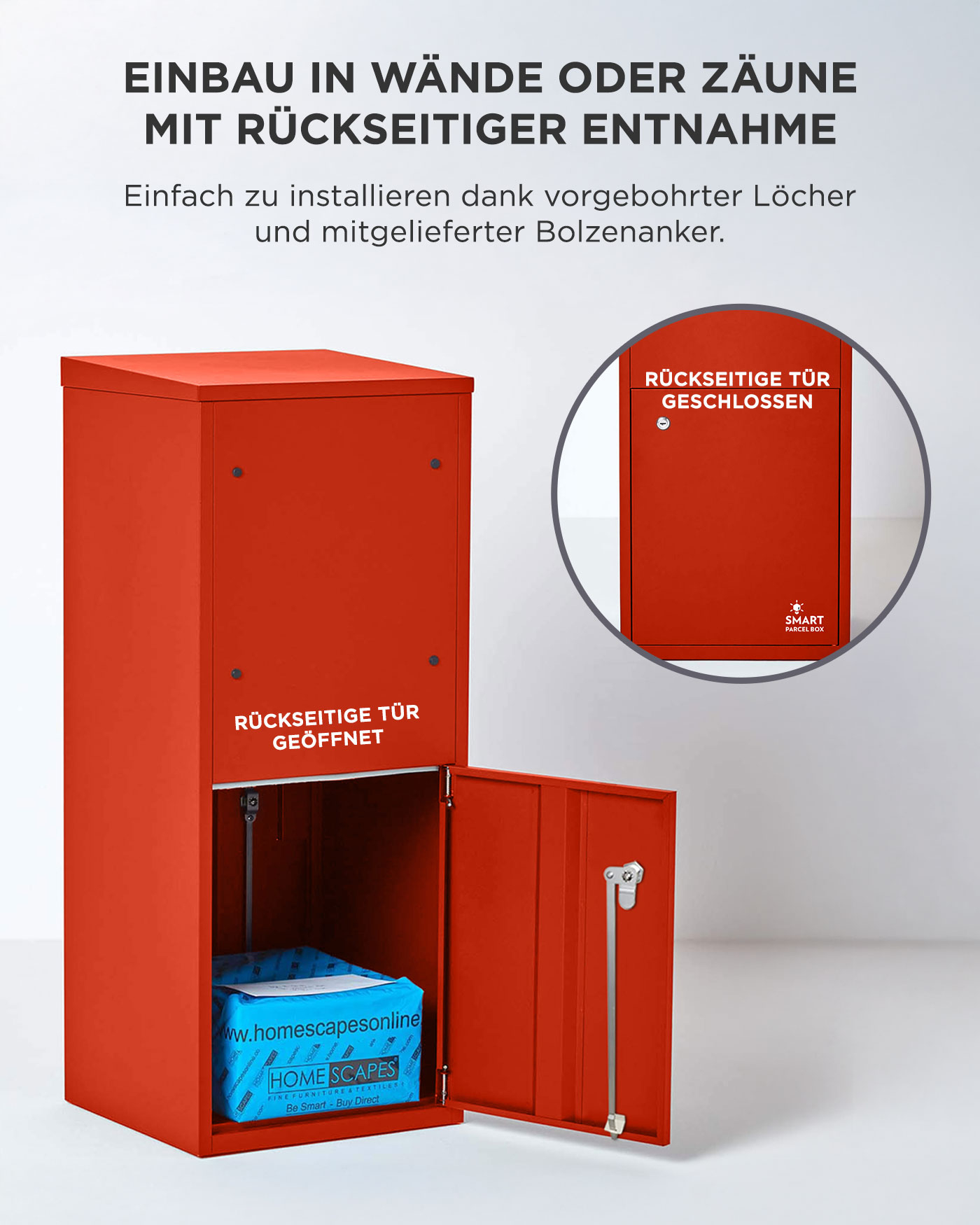 SMART PARCEL BOX™ L rot, große Brief- & Paketbox für alle Paketdienste